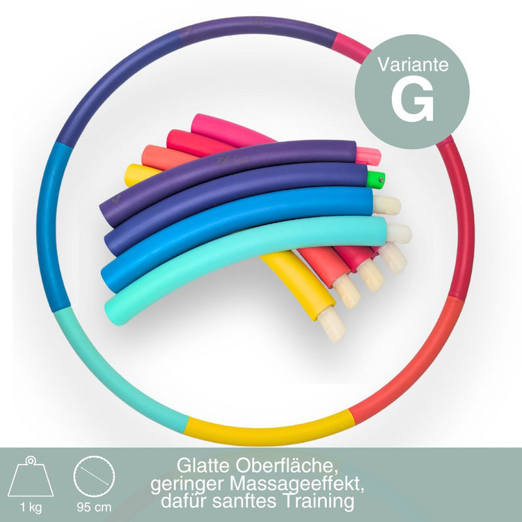 Auch wenn du bereits hullern kannst, nimm dir Zeit, dich an das veränderte Bewegungsgefühl des G zu gewöhnen. Beginne mit kurzen Einheiten und achte dabei besonders auf eine gleichmäßige, bewusste Bewegung. Der Reifen fordert mehr Kontrolle – das stärkt Körpergefühl, Koordination und Tiefenmuskulatur.